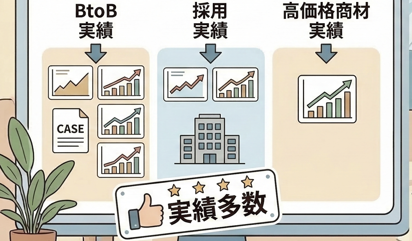 「自社のジャンルで成功事例があるか」「予算内でどこまで動いてくれるか」など、まずは直球で資料請求や問い合わせをしてみて、その回答の質で判断するのが良さそうです。